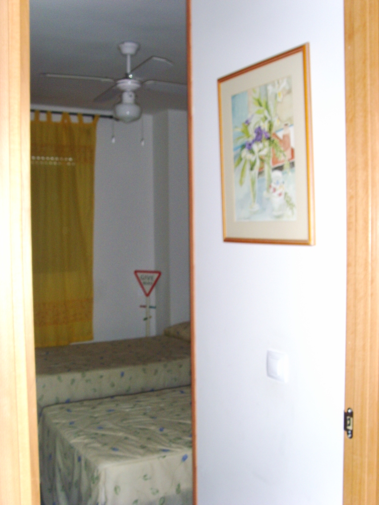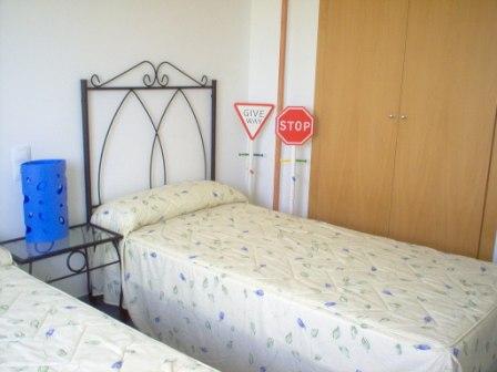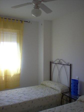 El segundo dormitorio, está vestido con dos camas de 90 cm, armario y ventilador de techo.